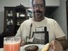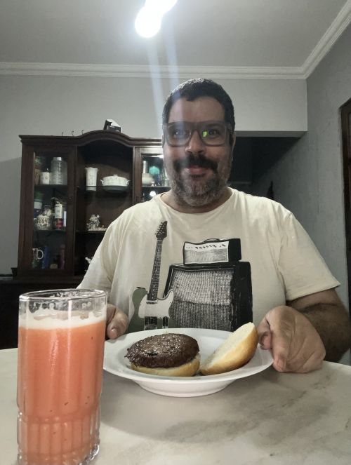 Eu aà agora jantando hambúrguer na minha casa